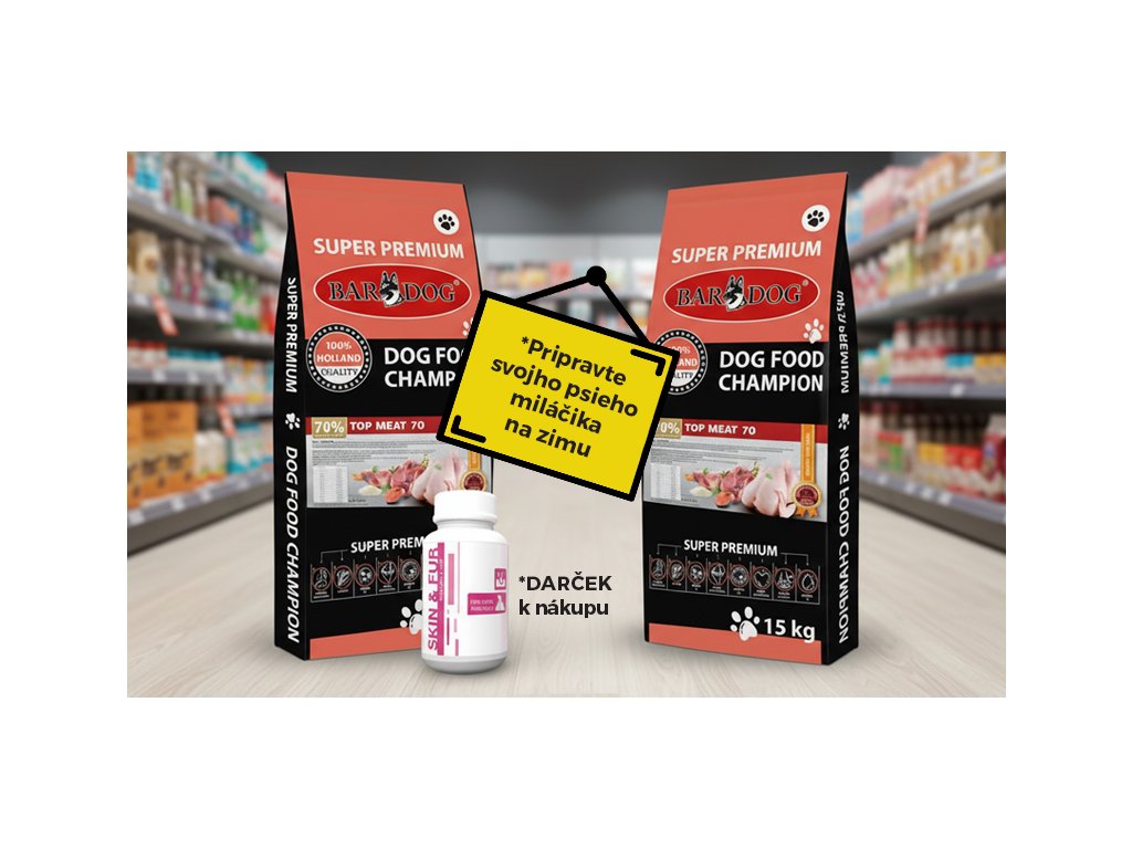 Bardog lisované granule za studena Top Meat 70 DARČEK k nákupu dvoch balení (30kg) - VetaPro výživový doplnok pre psov a mačky Skin & Fur 60tbl